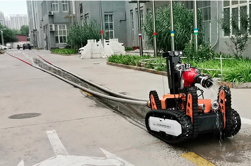 Robot ini dirancang dengan remote control nirkabel. unit remote control dan monitor baik terintegrasi atau terpisah.kondisi internal, status robot, suhu dan kelembaban di lokasi, dan informasi alarm tentang konsentrasi gas beracun dan berbahaya, mengendalikan gerakan robot seperti maju, mundur, dan berputar.Ini memiliki kemampuan pengintaian jarak jauhTubuhnya dilengkapi dengan tiga jenis perangkat persepsi lingkungan dan peralatan kontrol platform awan, termasuk platform awan elevasi dan rotasi, kamera definisi tinggi,kamera pencitraan termal, dan sensor gas. juga dapat dihubungkan dengan modul alarm suara dan cahaya untuk memperingatkan petugas pemadam kebakaran atau masyarakat, secara efektif menghindari bahaya.Setelah memperoleh informasi sumber api secara efektif melalui alat pengintaian jarak jauh, robot ini dilengkapi dengan motor bertenaga tinggi yang dapat membantu petugas pemadam kebakaran menyeret kantong air api ke area sumber kebakaran yang berbahaya untuk memadamkan,dan dapat membawa berbagai jenis tas air api domestik dan asing, dan dapat mengendalikan jarak jauh pelepasan air atau busa. Berdasarkan modul pickup dan speaker modul yang dilengkapi, ia mengambil suara dari lingkungan di lokasi.Bahkan jika petugas pemadam kebakaran tidak dekat dengan tempat kebakaran, mereka dapat mendengar teriakan bantuan dari orang-orang di lokasi penyelamatan melalui modul speaker dan memiliki percakapan langsung dengan orang-orang di tempat kejadian.